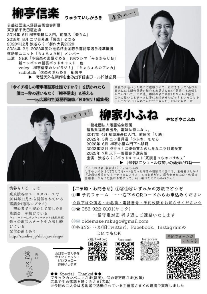 どがちゃが二人会 柳亭信楽・柳家小ふね 2026年5月31日(日) 山口 洞春寺 ご予約https://ssl.form-mailer.jp/fms/39c61226872783 https://twitter.com/oidemase_rakugo/status/2012498549896867954 関連記事 それゆけ上方落語 小文三・八十助二人会桂小文三 桂かかおG.W.落語三人旅春風亭一之輔 独演会G.W.落語三人旅林家たい平・立川晴の輔 二人会 投稿ナビゲーション それゆけ上方落語 小文三・八十助二人会